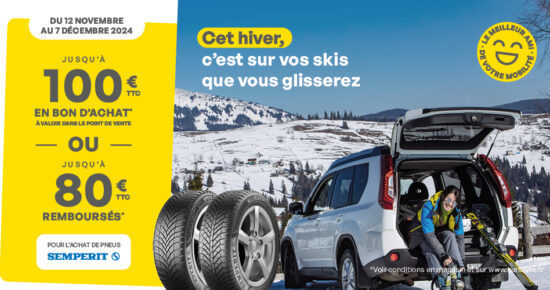 Du 17 février au 15 mars 2025, jusqu’à 100€ offerts en bon d’achat ou 80€ remboursés pour l’achat de pneus […]